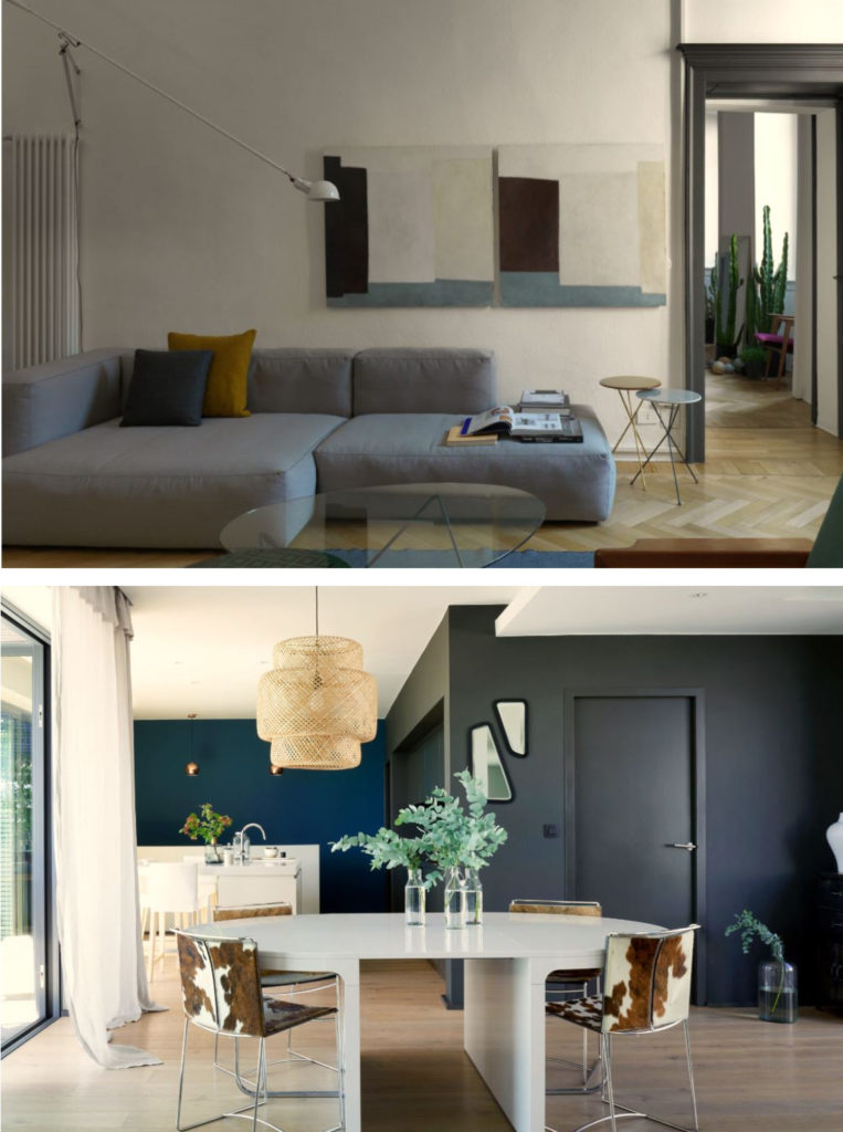 Quelle couleur choisir pour les plinthes? Fini le temps où l’on optait pour des plinthes en bois rappelant le parquet! Désormais, ce qui appartient au mur et bien… appartient au mur! Cette règle permet de renforcer la sensation de hauteur dans la pièce. Ainsi, la tendance veut qu’on privilégie les mêmes teintes et matériaux sur les plinthes que sur les parois pariétales. Autre voie possible: mettre en valeur les plinthes en les peignant de la même couleur que les boiseries et les encadrements de portes et fenêtres (en général, blanc ou noir).