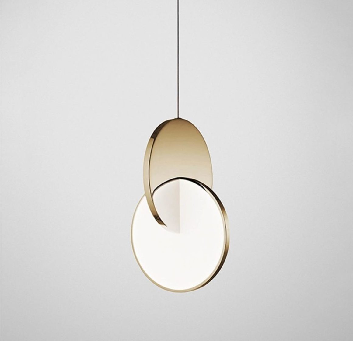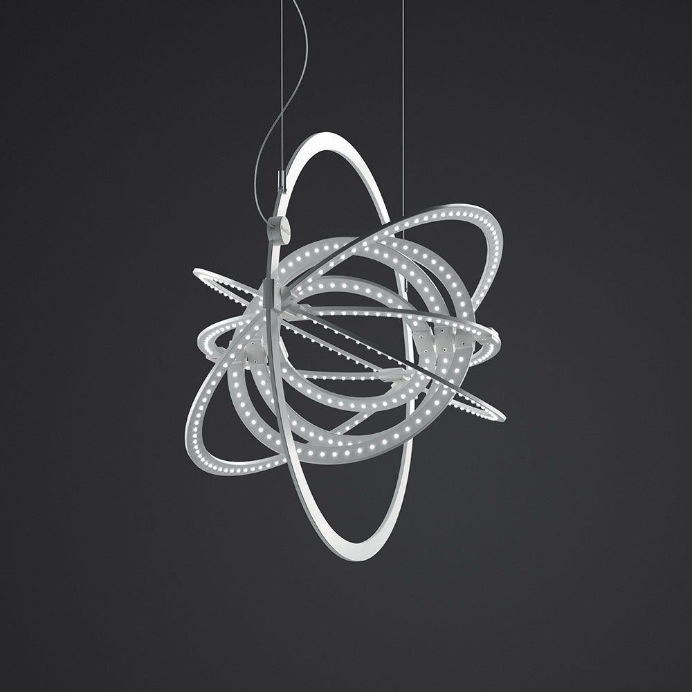 Suspension dont les neuf ellipses concentriques et mobiles évoquent un système solaire. Design Carlotta de Bevilacqua.