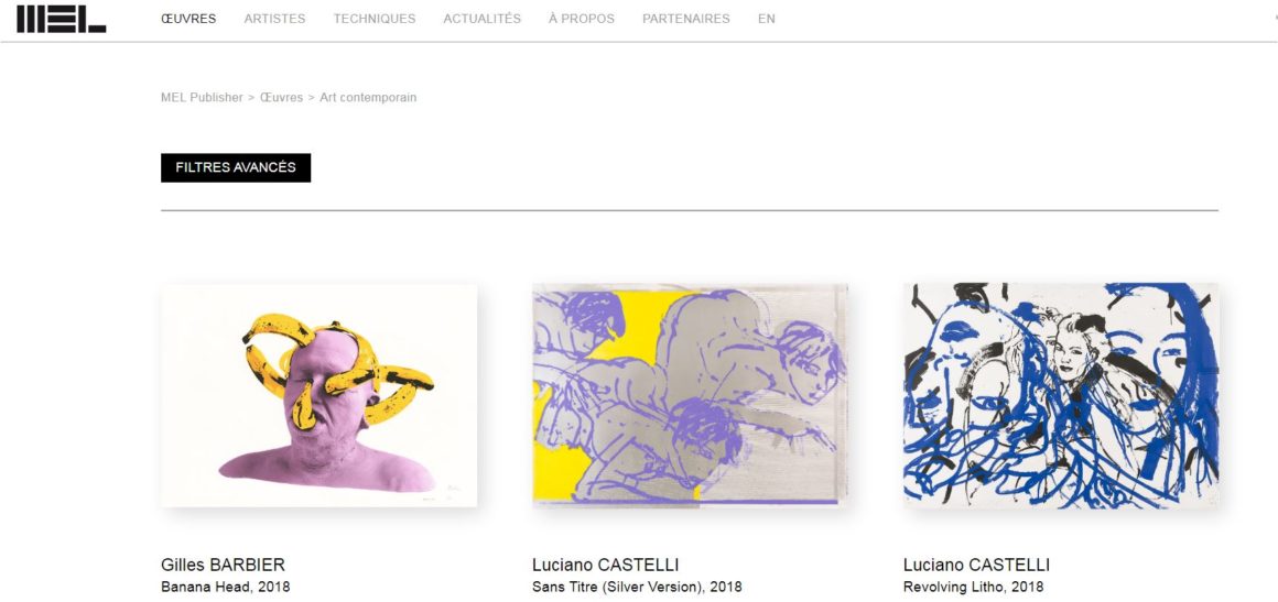 Ce site intéressera beaucoup ceux qui cherchent des artistes actuels. En effet, la maison d’édition MEL publisher a pour but de promouvoir et rendre accessible au plus grand nombre les œuvres d’artistes contemporains. Le prix n’est pas celui d’un poster: il faut compter entre 500 et 3000 euros. Mais on acquière une véritable oeuvre d’art puisqu’il s’agit de multiples d’art.
