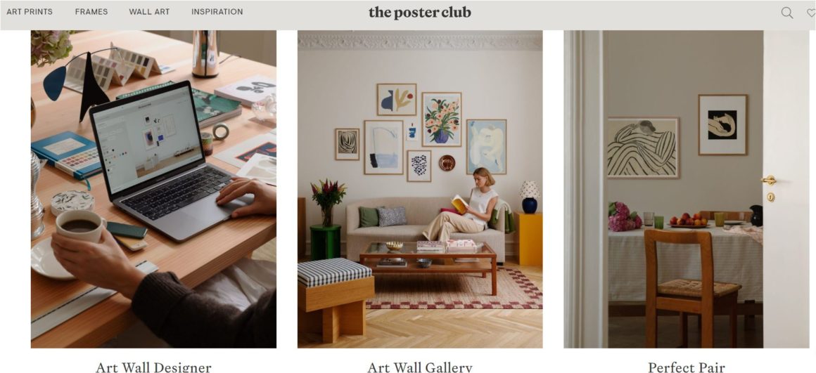 Basé à Copenhague, The Poster Club propose des impressions triées sur le volet, créées par différents artistes, photographes et designers. L’équipe sélectionne des dessins abstraits et apaisants. Les tableaux sont faciles à assortir.