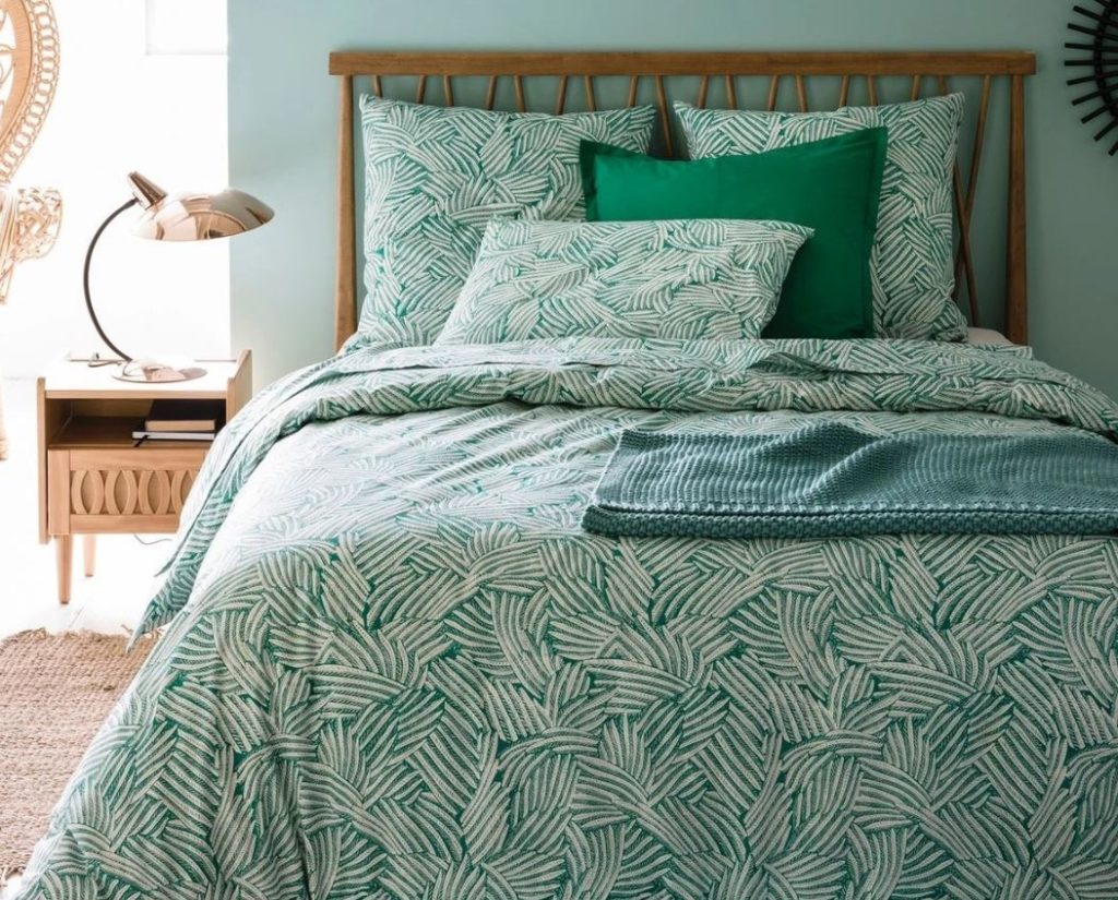 C’est sans doute l’arrangement qui séduira le plus ceux qui manquent de temps le matin. En masquant draps, couette et oreillers sous une jeté de lit, on obtient rapidement l’apparence d’un lit ordonné. Ici, la parure a été parfaitement lissée. Un pli net a été réalisé au niveau des oreillers.