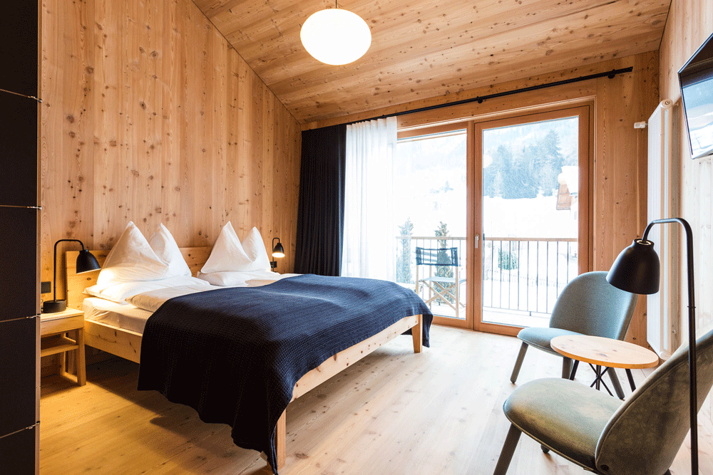 Si vous cherchez une manière originale de faire un lit dans un chalet, pourquoi ne pas opter pour des coussins pliés en forme de montagne?