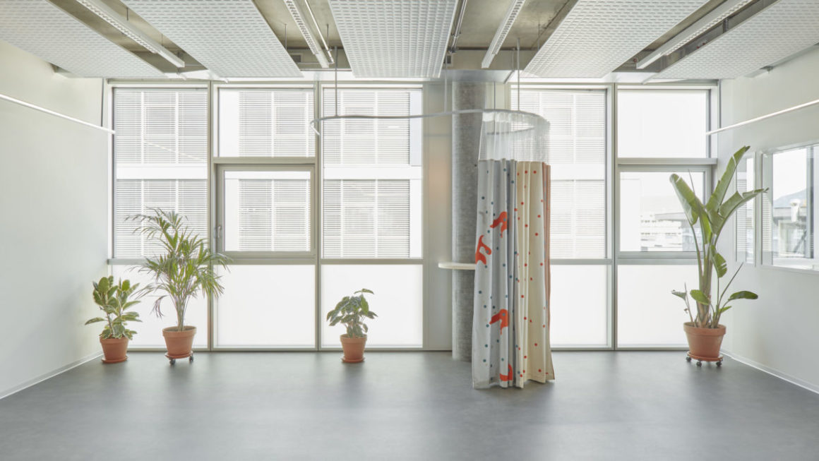 Au total, 110 mètres de textile provenant de la ressourcerie Outlet B ont été utilisés pour créer de grands rideaux dont la fonction est de donner de la flexibilité à l’espace tout en permettant une gestion de l’acoustique. Pour cette création, Apropå a collaboré avec Lucie Guiragossian de l’atelier Lundi Piscine. Les rideaux ont ensuite été confectionnés par l’atelier de couture de Caritas, à Plan-les-Ouates.