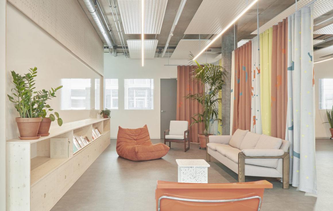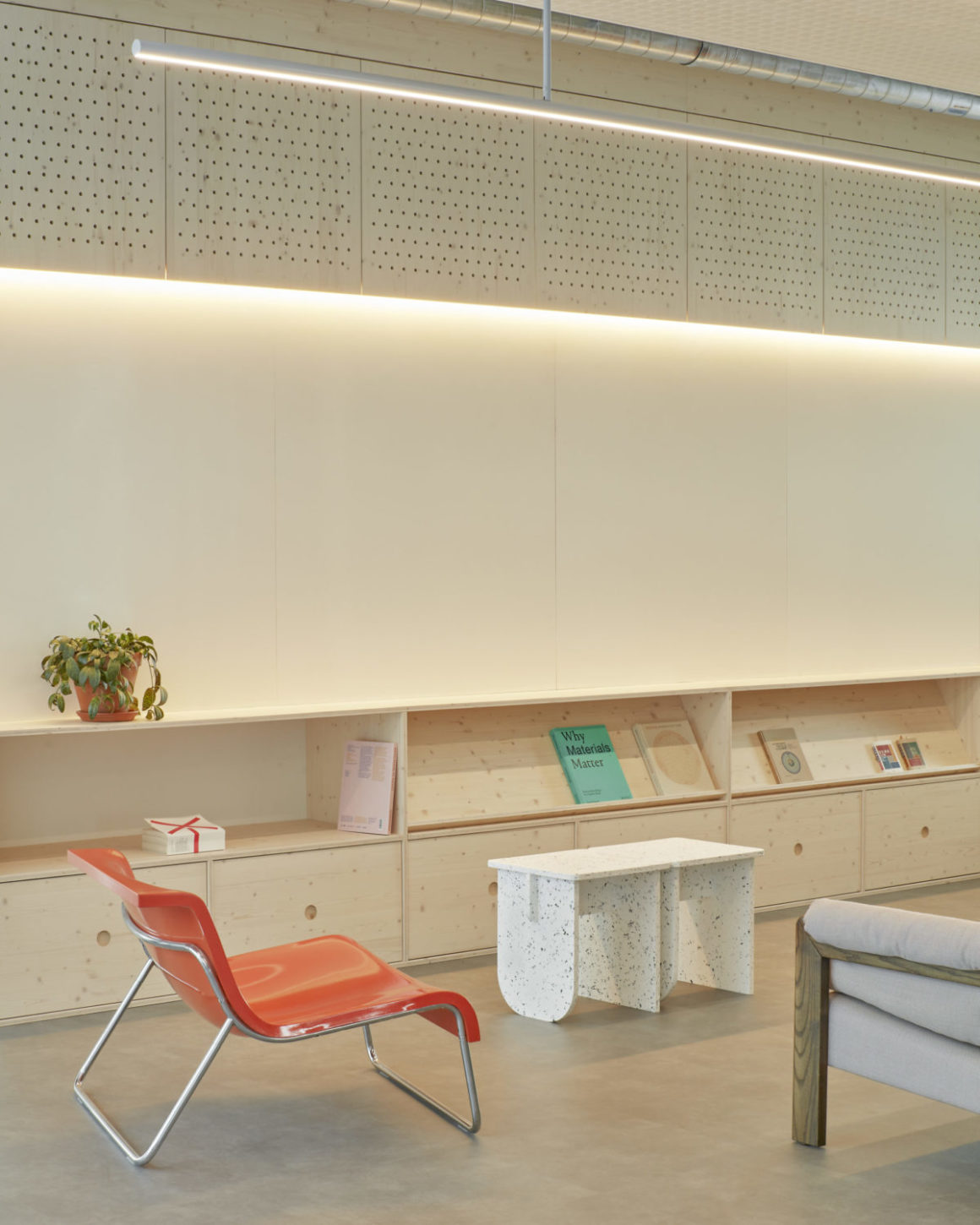 Une partie du mobilier a été dessiné et réalisé par Apropå à partir de panneaux en plastique post-consommation recyclé.