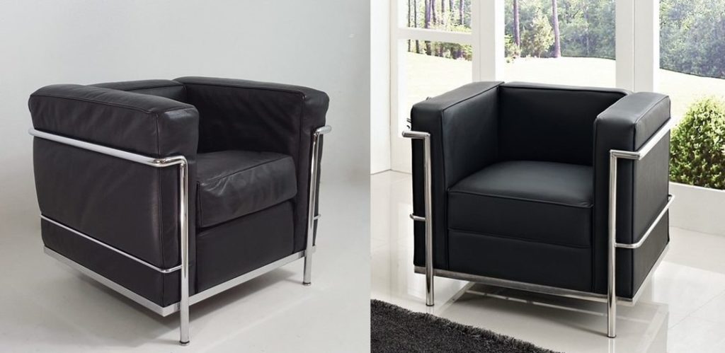 Sur le vrai fauteuil LC2, le pliage du tube métallique présente un aspect courbe, non anguleux. L’épaisseur de la courbe est parfaitement constante. Le coussin du haut est moins épais que celui du bas. Les soudures sont soigneusement lissées et polies depuis que Cassina produit le fauteuil. Le revêtement est en cuir de qualité. Sur la structure sont gravés la signature de Le Corbusier, celle de Cassina, le logo Cassina I maestri et un numéro de série. Toujours signés, les modèles plus anciens ne sont pas gravés avec la totalité de ces éléments. Cela s’explique notamment par le fait que le LC2 était produit par Thonet et Embru avant 1964. Plus d’infos: cassina.com