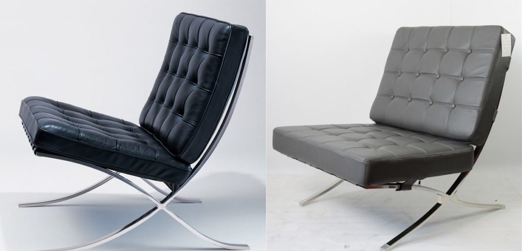 Sur le vrai fauteuil Barcelona, il y a huit sangles en haut, et neuf en bas. Sur les coussins, les carrés de cuir sont reliés par des passepoils qui forment de petits boudins. Lorsqu’on ouvre la housse des coussins, il apparaît clairement que celle-ci se compose de plusieurs carrés de cuirs juxtaposés. Un logo représentant la lettre K est inscrit sur la face intérieure du rembourrage. Il n’y a pas de couture visible sur les coins de l’assise. Aujourd’hui, les pieds sont fins, mais pendant longtemps on pouvait choisir entre deux épaisseurs. Il n’y a en tous cas jamais eu de renfort sur la base. Sur les versions actuelles, le nom KnollStudio et la signature du designer y sont gravés avec un numéro de série. Plus d’infos: knoll.com