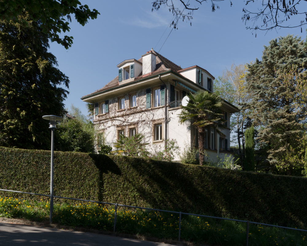 Deux époques cohabitent dans cette villa qui se dresse sur les hauts de Lausanne, au cœur d’un joli parc arborisé. L’enveloppe extérieure – restée dans son jus – reflète l’état général dans lequel se trouvait l’intérieur. Tributaires de demandes d’autorisation, les façades, terrasses et toiture ont été refaites ultérieurement à la restauration intérieure.