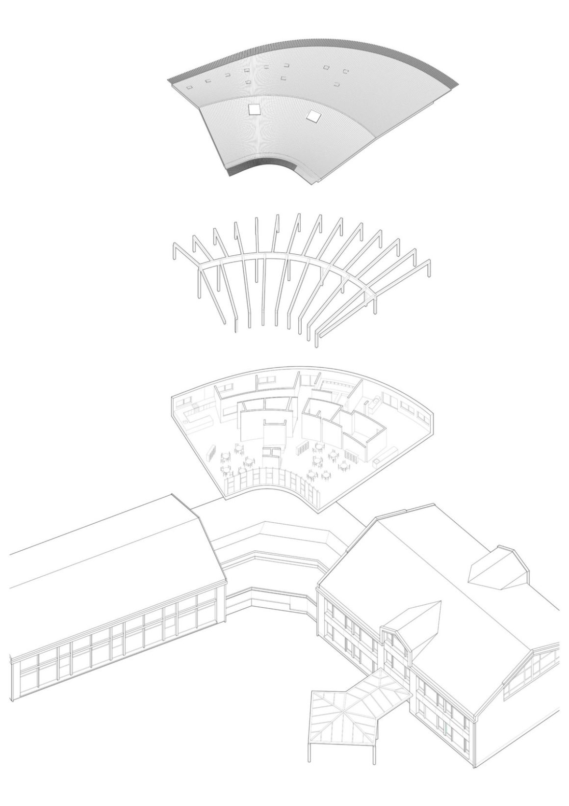 Axonométrie éclatée de la nouvelle construction venant s’insérer dans l’existant