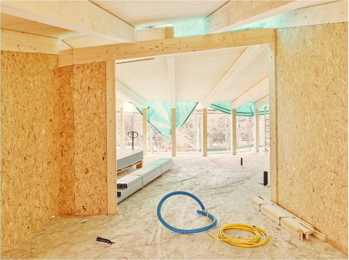 La persistance de conditions sèches et chaudes durant la période de végétation a provoqué depuis 2018 des changements notables et mesurables dans la forêt. Comme le précise le dernier inventaire forestier, l’épicéa (dans le Jura, Plateau et Préalpes) et le hêtre (dans le Jura) ont vu leurs peuplements reculer pour différentes raisons. Le sapin blanc serait, quant à lui, extrêmement sensible aux événements climatiques extrêmes. Pour pouvoir continuer à remplir ses fonctions, la forêt doit donc s’adapter. Changer nos manières de bâtir peut-il favoriser le renouvellement de cet écosystème ? C’est en tous cas le point de vue adopté par le bureau d’architecture Kunik de Morsier lors de la construction de la crèche de Vufflens-le-Château.