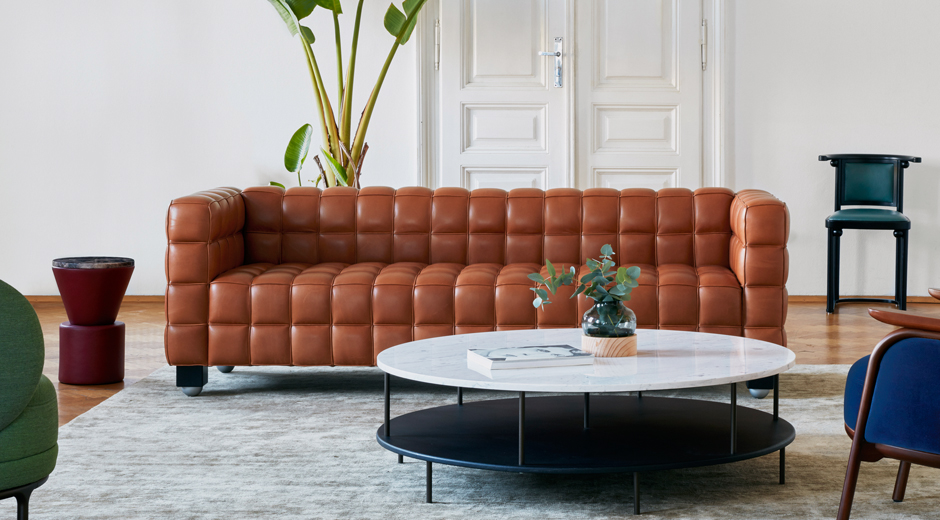 Le nom du canapé Kubus évoque le cubisme, célèbre mouvement artistique de l’époque. Mais son design témoigne surtout du goût de Josef Hoffmann pour les lignes géométriques strictes ainsi que son usage continuel de la forme carrée. En témoigne le surnom que l’on a donné à son style de meubles et d’architecture, le Quadraststil. Le revêtement du canapé se compose de carrés de cuir cousus à la main. Plus d’infos: Wittmann.