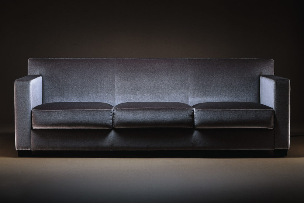 La décorateur Jean-Michel Frank était l’un des principaux décorateurs français de la période Art déco. Il avait coutume de dire: « On peut aménager très luxueusement une pièce en la démeublant ». Son canapé Dossier Droit est sorti des ateliers d’ébénisterie d’Adolphe Chanaux. Il incarne encore aujourd’hui – avec le canapé Club dessiné deux ans auparavant – le chic absolu. Sa forme ultrasimple se caractérise par la répétition de formes rectangulaires. Le dossier est composé d’un seul élément rembourré marqué par des surpiqûres verticales. Ces surpiqûres séparent visuellement les places assises. Pieds type sabot en bois massif. Plus d’infos: Ecart International.