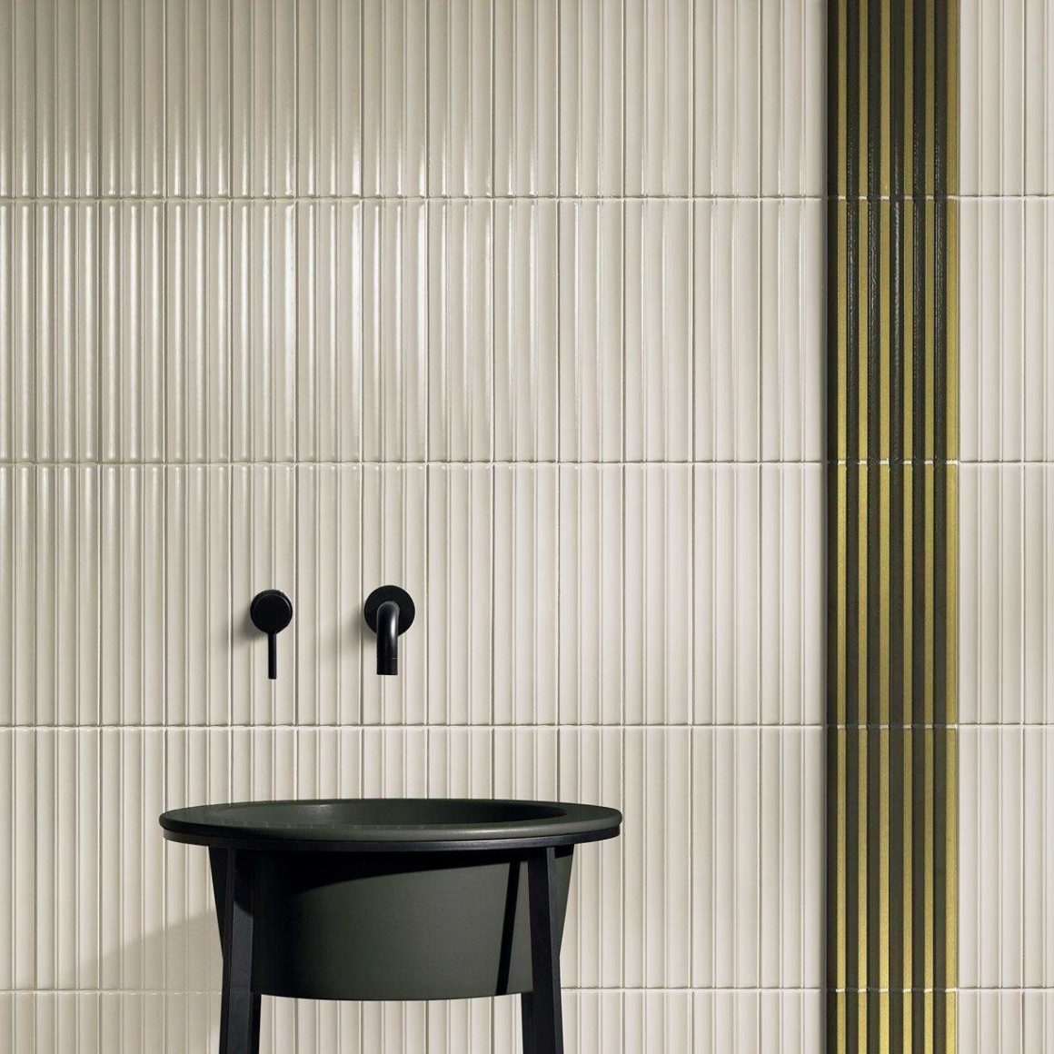 Exemple de pose de carrelage à mi hauteur. Carrelage Norse, Terratinta Group.