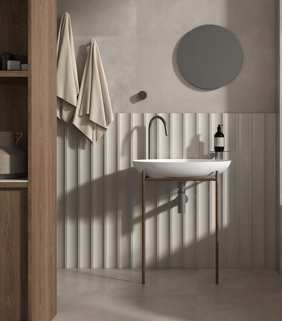 Collection de carrelage Slow wall, Marazzi, délimitant également la zone bain.