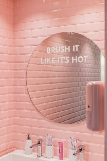 Est-ce une clinique dentaire ou un salon de thé? Sofian Ameur et Robin Thomas, respectivement orthodontiste et médecin dentiste, et Thainara Mascaro, assistante dentaire, sont à la tête de six cliniques dentaires en Suisse romande créées en à peine sept ans. Au cœur de leur projet, la volonté de dépoussiérer l’image du dentiste en offrant des soins accessibles à tous financièrement, tout en promulguant un accueil digne d’un hôtel cinq étoiles. L’ambiance cosy, la dominance de rose et les beaux matériaux ont été choisis par l’architecte Lesli Petrucci dans cette perspective. La sophistication de la décoration est destinée à montrer que le personnel est aux petits soins. Du reste ici, on vous offre volontiers un bon café. Et pour les interventions, des serviettes chaudes, un casque à réduction de bruits et des séries TV sont à disposition.