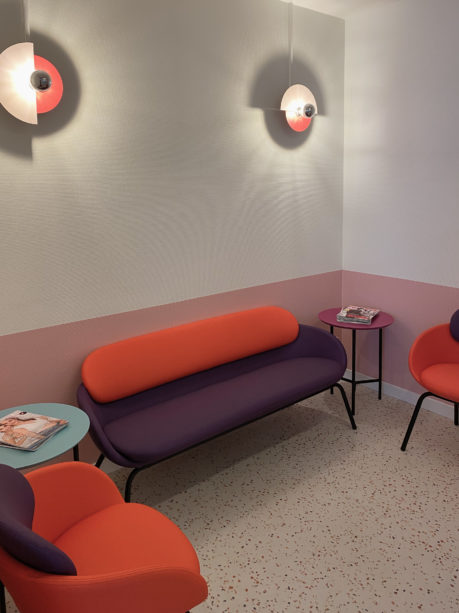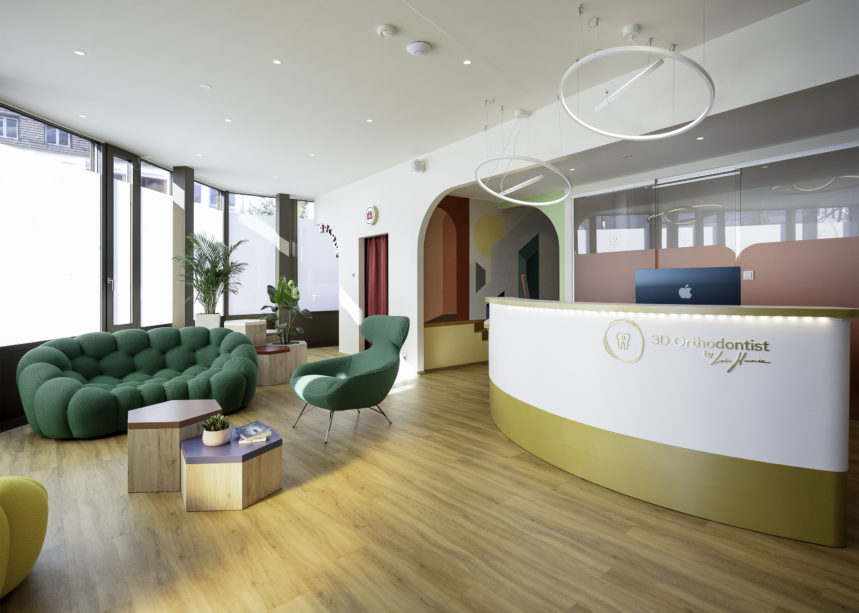 Pour une visite bien plus joyeuse chez l’orthodontiste, le Studio Julia Christ a repensé les codes du cabinet médical traditionnel. L’espace d’accueil conçu sur mesure et le mobilier tout en rondeur invitent les nouveaux arrivants à patienter dans un confort moelleux. Dans cette salle d’attente hors du commun, une réplique de jeu vidéo d’arcade permet de divertir les jeunes patients, et les moins jeunes ! Et pour ceux qui souhaitent immortaliser ce moment, direction le photomaton où l’artiste Nicolas Bamert a été invité pour créer un environnement immersif fluorescent qui donne le sourire à quiconque s’y trouve.