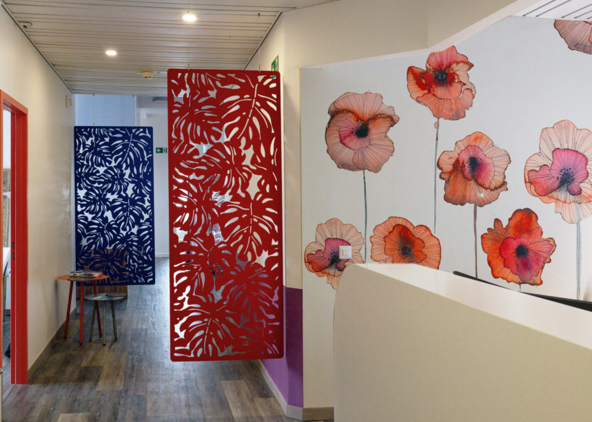 Car oui! La déco peut parfois nous en dire long… Elle nous dit que nous sommes dans un lieu de soin où l’on prête attention à nos émotions et où le personnel peut montrer de la compassion. Elle nous dit que nos médecins ne sont pas seulement des spécialistes de la douleur mais aussi des alliés optimistes de la santé et du bien-être. Elle nous lance une invitation à revenir pour faire des contrôles préventifs. Avis à tous ceux qui vont se faire soigner en freinant des quatre fers !