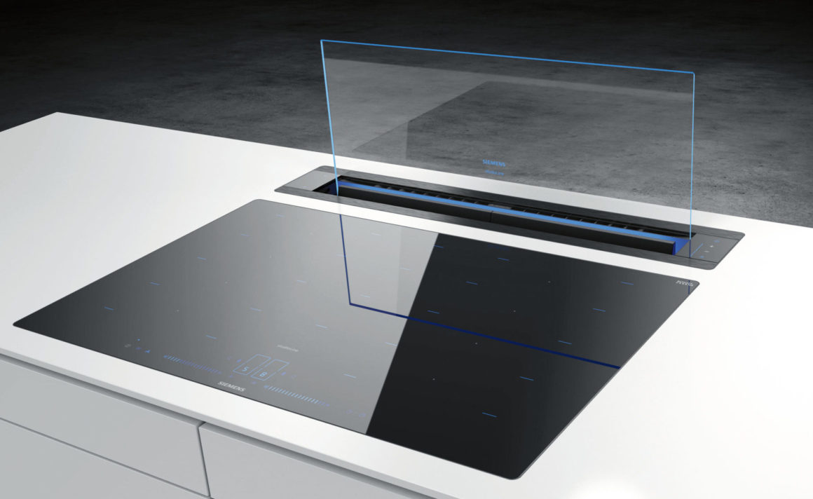 La hotte GlassdraftAir de Siemens est une hotte escamotable qui disparaît dans le plan de travail après utilisation.
