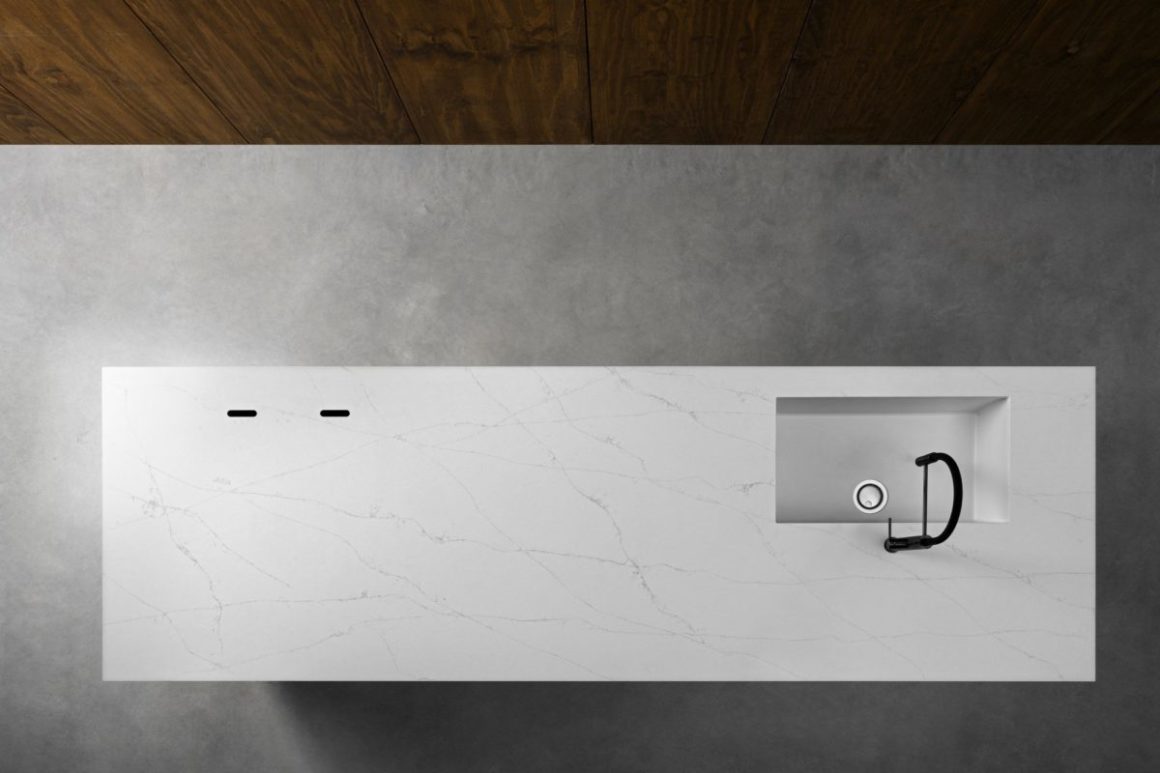 Le système fonctionne grâce à une plaque à induction cachée sous le plan de travail. Une révolution dans la conception des cuisines possible grâce à la mise au point d’un matériau spécial: la pierre sintérisée. Il s’agit d’un mélange de minéraux ayant subi une transformation au niveau atomique grâce à des procédés de compression et d’élévation de la température. La composition de la pierre sintérisée et son mode de fabrication en font un matériau inerte. Elle est réalisée sans résine synthétique ou produits pétroliers (contrairement au quartz par exemple).
