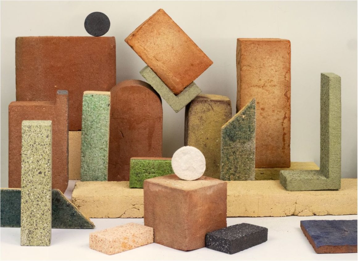 Composition: le matériau est réalisé à 100% à partir de déchets de construction et de démolition allant des gravats, à la céramique en passant par le verre. Plusieurs couleurs possibles.