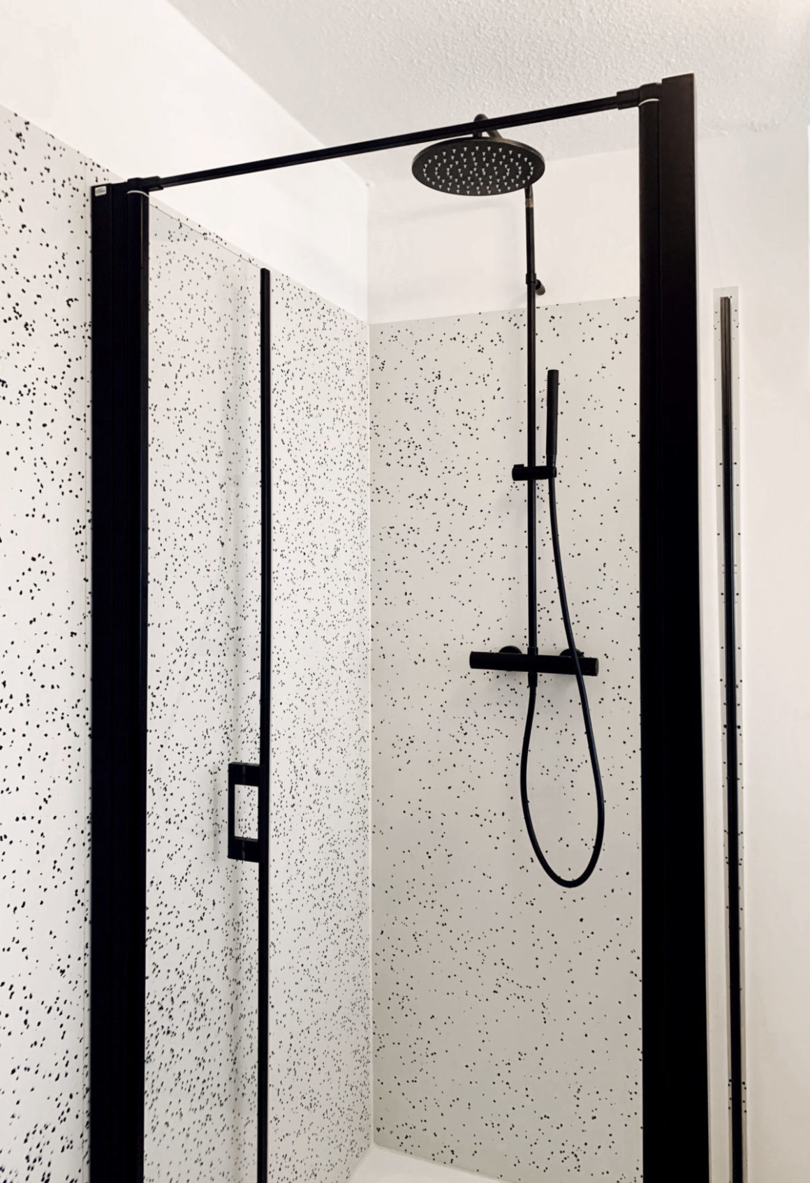 Douche réalisée avec des panneaux en plastique recyclé The good plastic company.