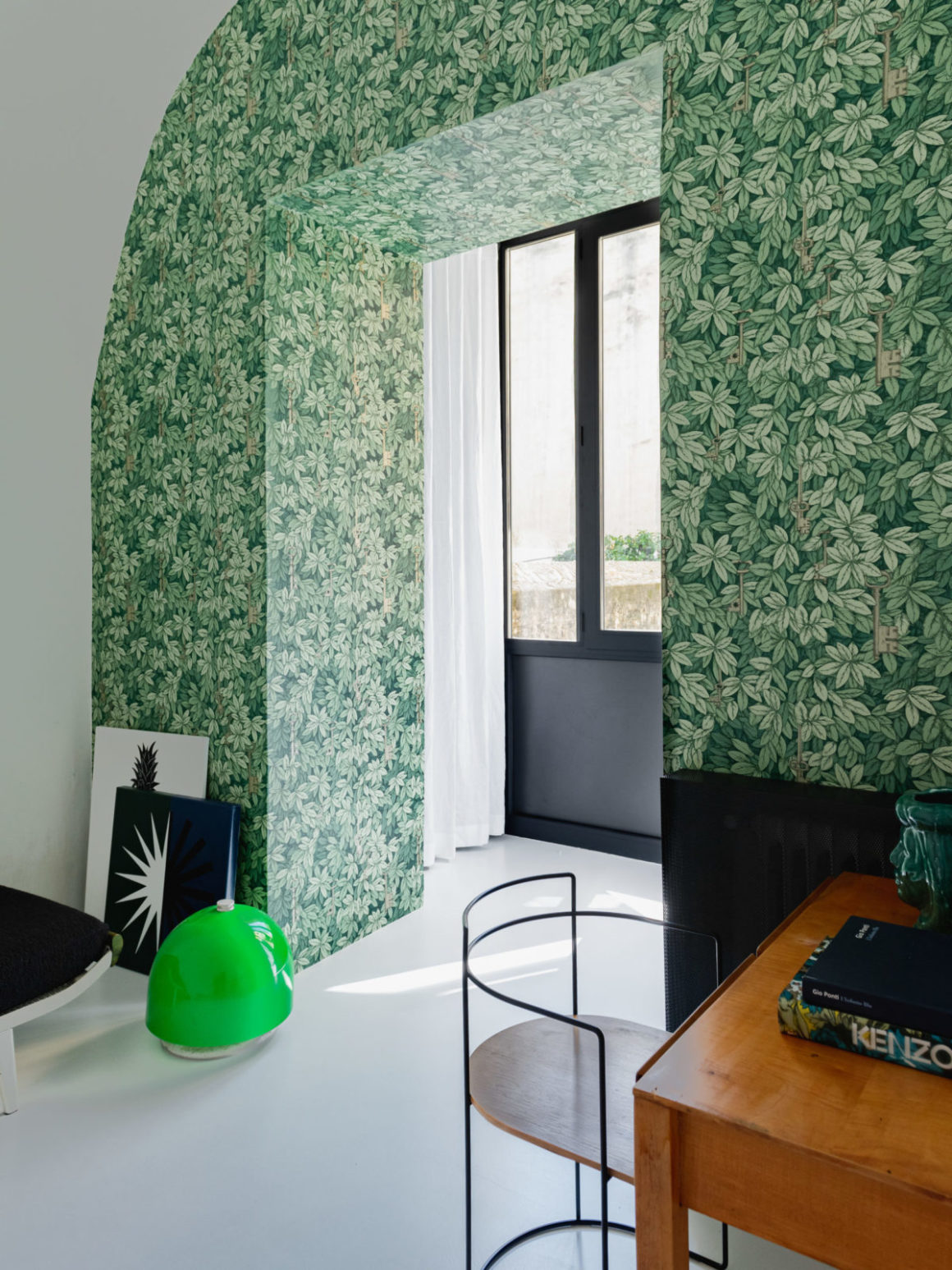 Pour autant, le papier peint ne s’applique pas toujours en « total look », bien au contraire. Pour ceux qui craignent l’overdose de motifs, il se colle sur un seul pan de mur afin d’apporter de la profondeur et embellir le décor sans pour autant alourdir l’ambiance. C’est du reste cet usage que l’on retrouve aujourd’hui le plus souvent dans les chambres (voir par exemple notre article sur les papiers peints pour enfant).