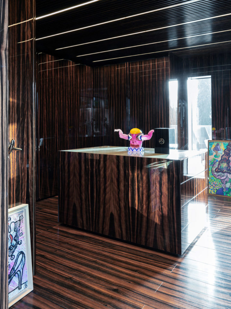Statuaire africaine, pop art, sculptures de grandes dimensions, tableaux et installations se succèdent à chaque coin et composent un ensemble hétéroclite imprégné de culture pop. Ces œuvres fortes, dignes d’un musée d’art contemporain, confèrent à la villa un caractère et une personnalité unique.