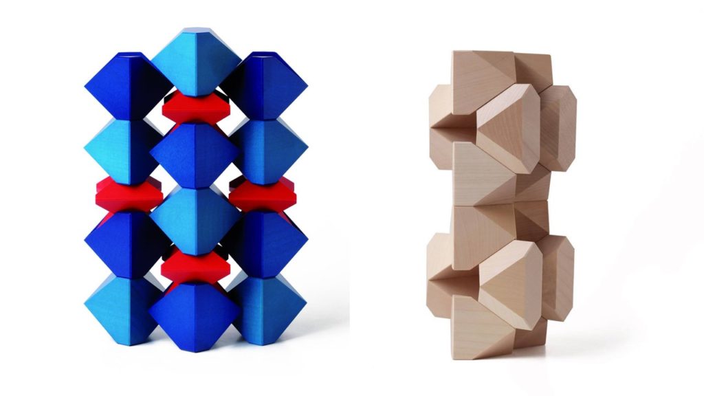 Voilà un jeu destiné au plus de 6 ans qui sait aussi détendre les adultes. Les blocs de jeux Tawa ont été conçus par le designer Christian Spiess pour le spécialiste suisse du jouet en bois Naef Spiele. Composés de formes angulaires, ces blocs permettent d’obtenir de multiples constructions aux formes sculpturales et aux effets graphiques forts. Le jeu – qui sert aussi d’objet décoratif- existe en version bois naturel ou coloré.