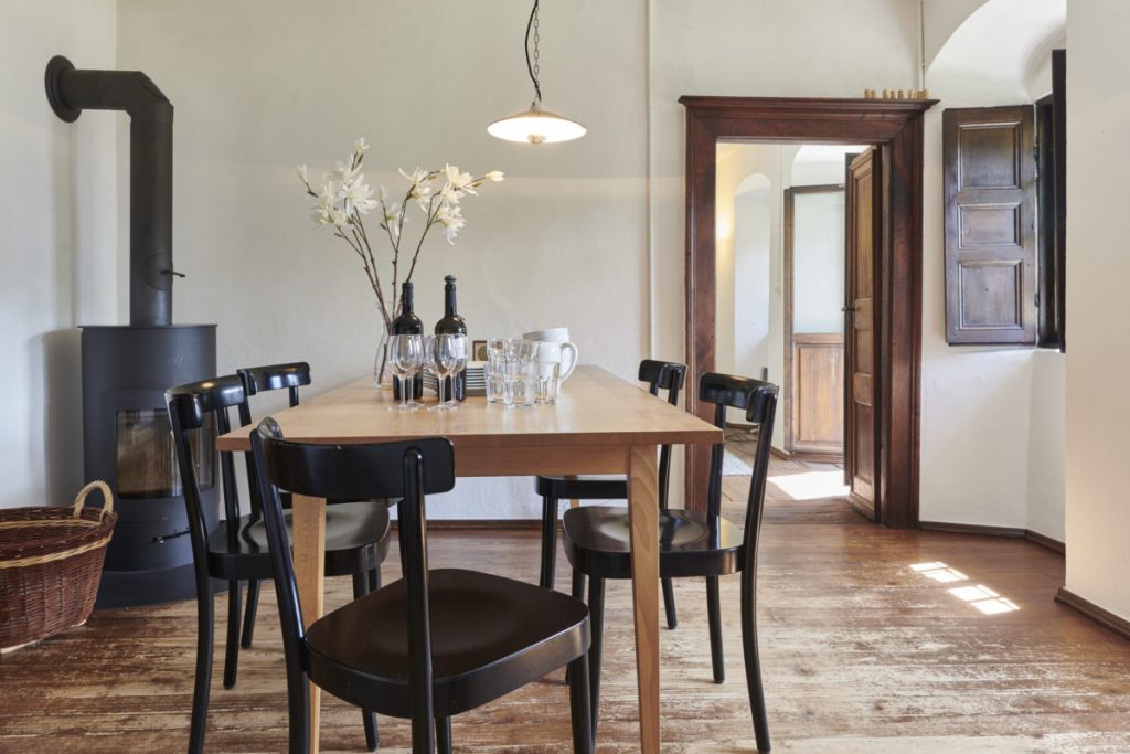 Son plan est typique des vallées de la région, avec des chambres en enfilade, carrées et de dimensions quasiment identiques, reliées à l’extérieur par une longue galerie. De belles armoires encastrées et la voûte de la cage d’escalier confèrent à la bâtisse une élégance épurée et une touche méridionale.