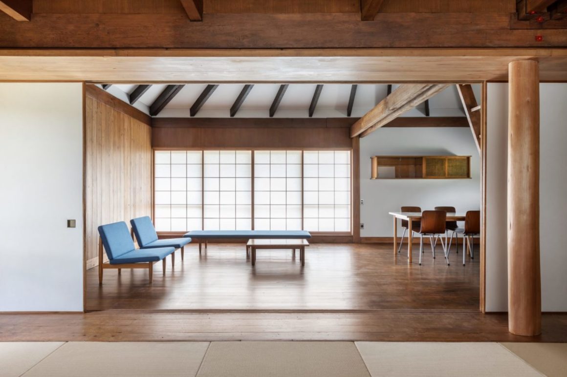 En 2022, le Vitra Campus s’est enrichi d’un autre bâtiment: la Maison parapluie de Kazuho Shinohara. Érigée à Tokyo en 1961 et inspirée de l’architecture vernaculaire traditionnelle japonaise, elle a été sauvée par le Vitra Design Museum qui l’a rénovée et reconstruite pour l’exposer de manière permanente. La maison parapluie est un chef-d’oeuvre du premier style de Shinohara qui évoluera par la suite vers des formes plus modernistes. Les volumes intérieurs dépouillés témoignent de la quête de purisme de l’architecte japonais.