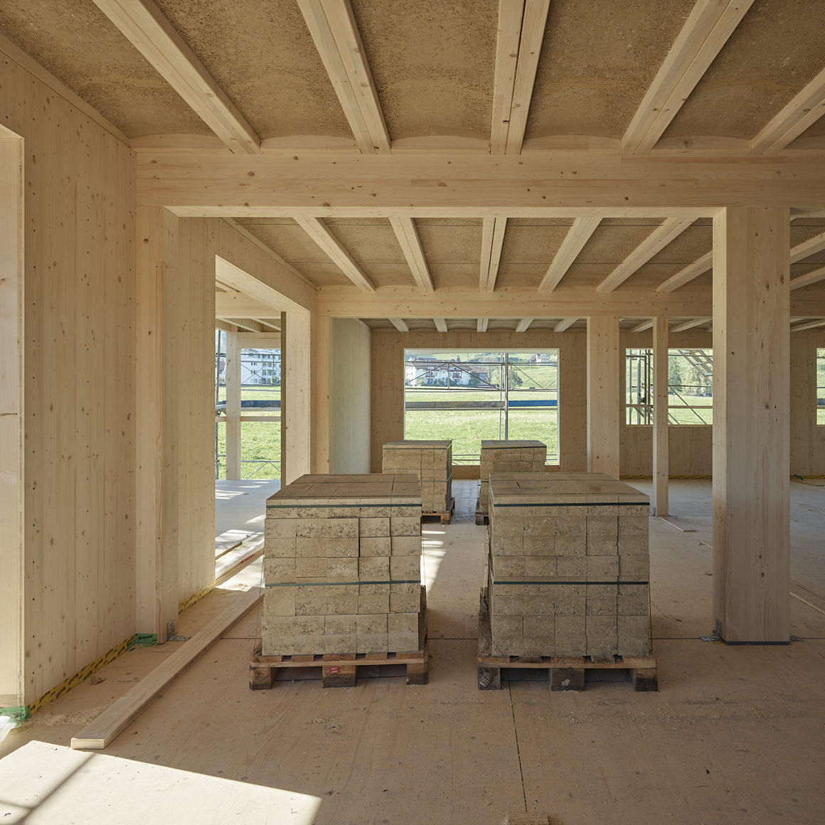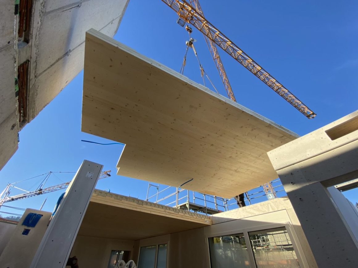 Plancher composite bois-béton de Renggli AG sont fabriqués en usine et montée ultérieurement sur le chantier.