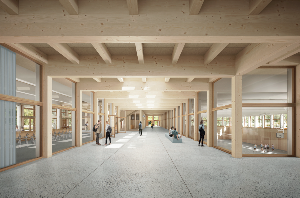 Un projet pilote comme les futurs gymnases d’Aigle et d’Échallens dessinés par le bureau d’architectes Giorgis Rodriguez avec du bois indigène scolyté démontre, par ailleurs, l’engagement du canton de Vaud en faveur de la standardisation de l’utilisation du bois bleu.