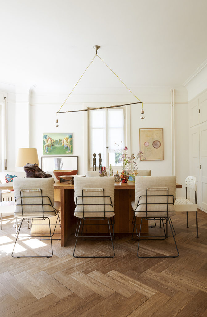 En plein cœur de la ville, dans un petit paradis de verdure aux jardins bucoliques au pied du quartier chic de Zurichberg se trouve un immeuble bâti au début des années 1920 par l’architecte zurichois Erhard Gull. La plupart des appartements appartiennent à des familles et se sont transmis de génération en génération. Aussi, lorsque Chaja Lang, Florian et leurs trois enfants ont eu l’opportunité de s’installer dans l’un d’entre eux, ils n’ont pas hésité un instant. Passionnée d’art et cofondatrice de Rue Hippolyte (site de curation d’art et décoration d’intérieur), Chaja mélange les genres avec talent et poésie et affiche un style éclectique et original que l’on retrouve dans son appartement.