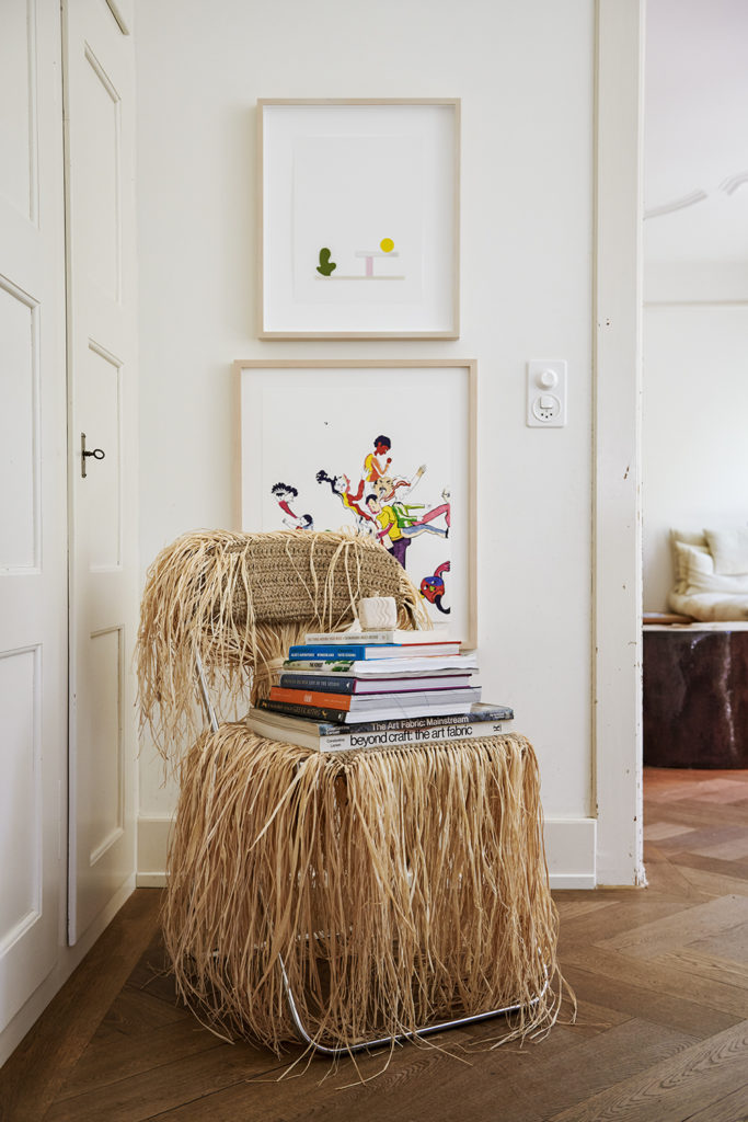 -Je suis historienne de l’art et j’ai une passion de longue date pour l’art contemporain et l’art brut. La plupart des œuvres qui se trouvent dans la maison sont celles d’amis artistes avec lesquels j’ai travaillé. Certaines d’entre elles sont des cadeaux. Cette sélection de créateurs engagés est aussi visible sur Rue Hippolyte, l’entreprise fondée avec Bettina Russo. Nous combinons des dizaines d’années d’expérience en art, architecture, design et mode. Ensemble, nous réalisons des installations artistiques adaptées à un lieu, et concevons des mises en scène d’intérieur sur mesure. Elles reflètent l’histoire et les intérêts particuliers de nos clients, sans se soucier des tendances actuelles. Nous travaillons des matériaux et créons des environnements dans une vision de durabilité.