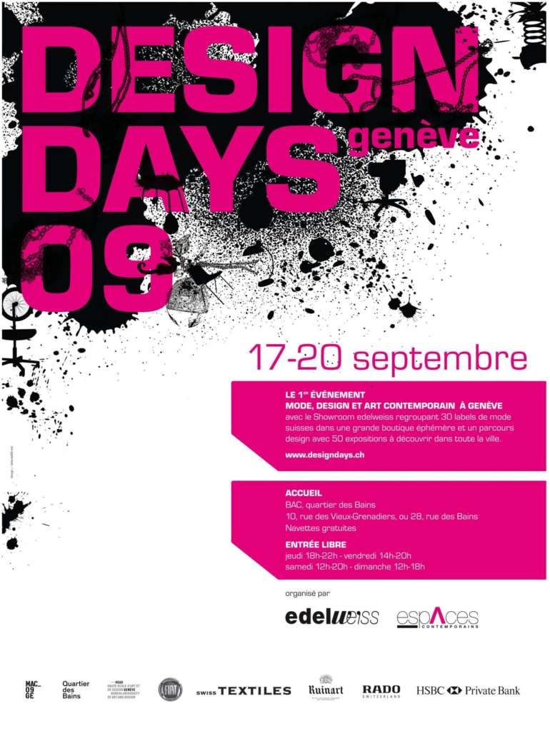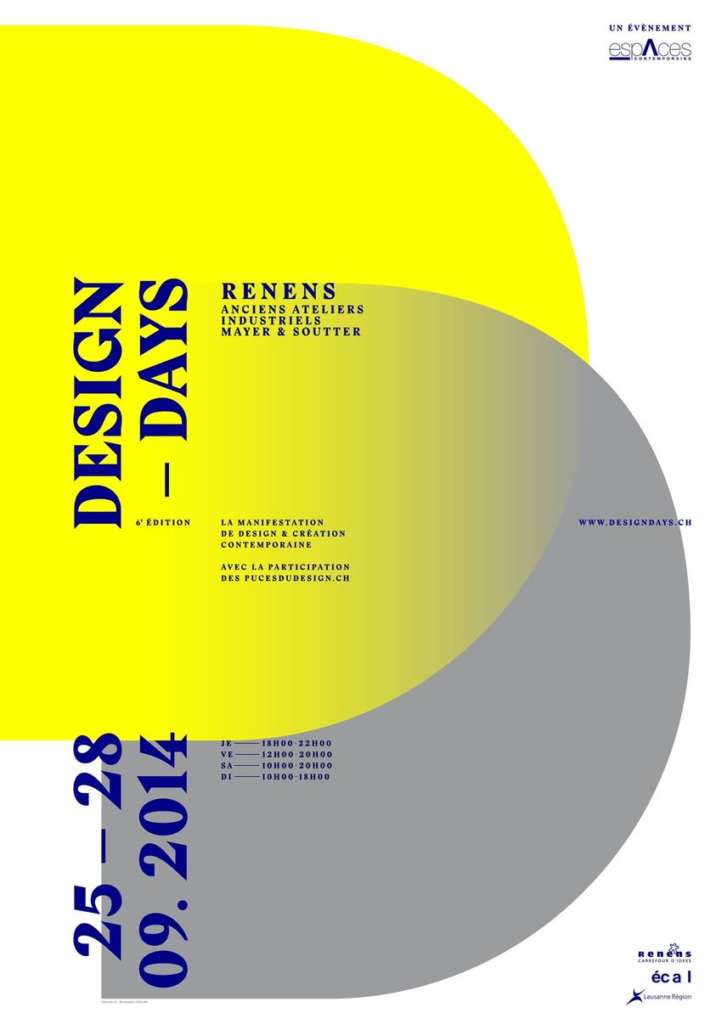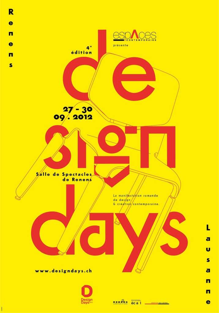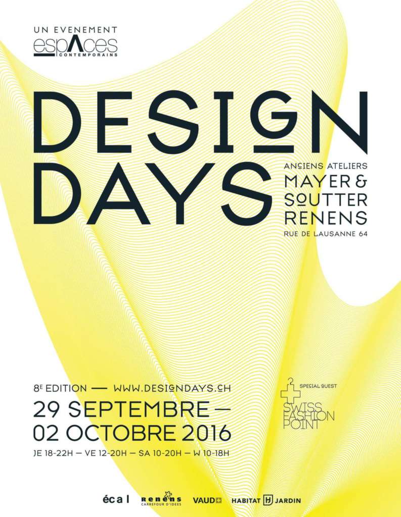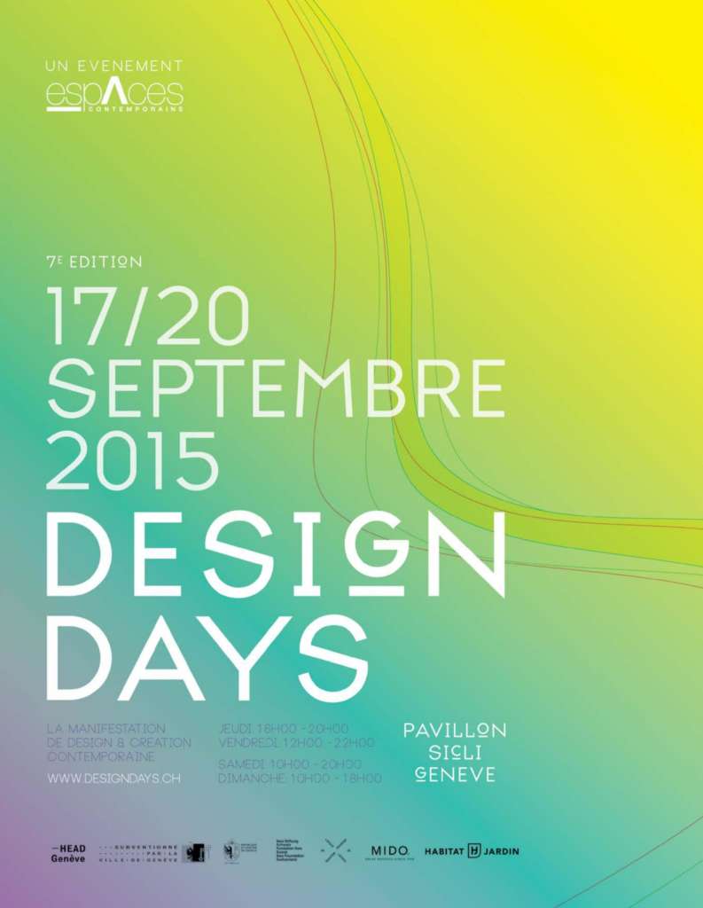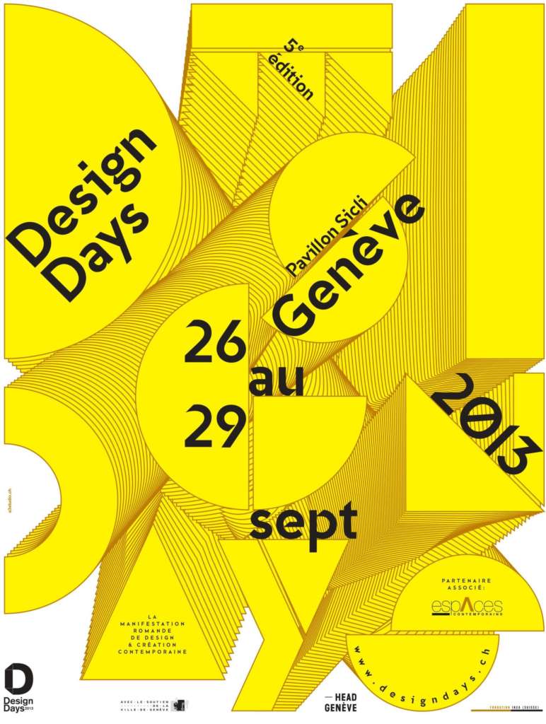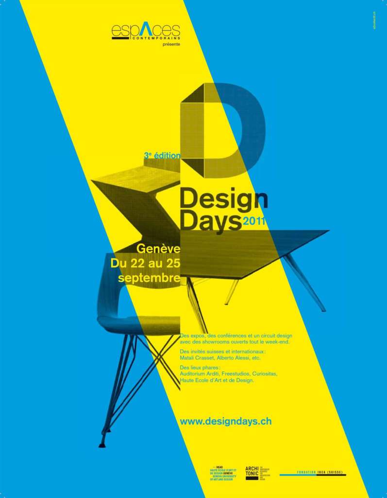 Du design d’objets à la photographie, de l’architecture au graphisme, Espaces contemporains défend avec passion tous les domaines de la création, en particulier helvétique. Partenaire des Design Days, le magazine collabore depuis toujours avec des talents locaux. À chaque édition de la manifestation, un nouveau concept pour sa communication visuelle (affiche, programme, signalétique, etc) a été proposé par différents créatifs qui ont su, chacun à leur manière, composer un visuel original pour le festival de design romand.