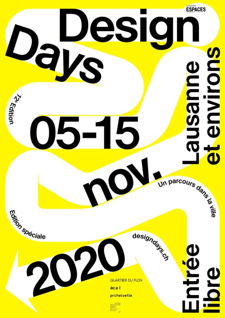 From object design to photography, from architecture to graphic design, Espaces contemporains passionately defends all areas of creation, particularly in Switzerland. A partner of Design Days, the magazine has always collaborated with local talent. At each edition of the event, a new concept for its visual communication (poster, program, signage, etc.) was proposed by different creatives who knew how, each in their own way, to compose an original visual for the Romand design festival.