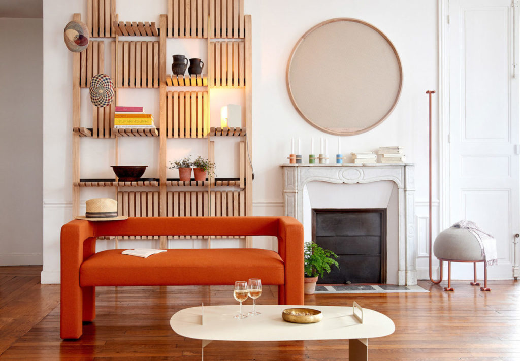 Système d’étagères Gate, Zacharchitects. Il apporte un véritable élément de décor dans le salon.