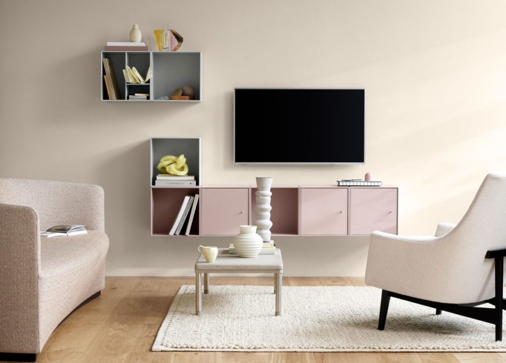 Modules d’étagères suspendues Montana Furniture utilisé dans un salon.