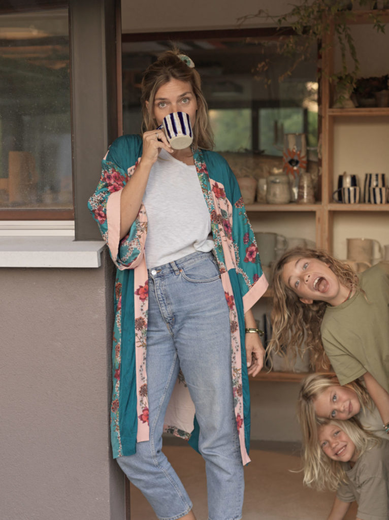 La céramiste Jil est ses enfants, Achille, Otis et Atlas.