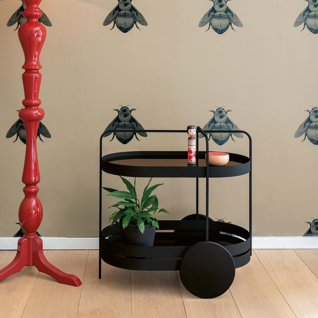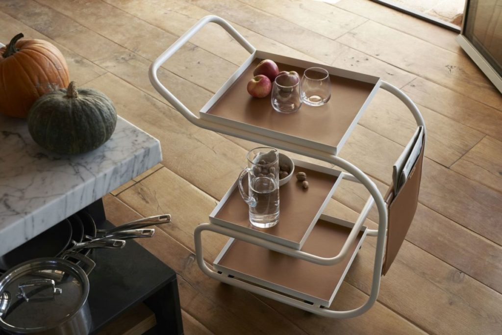 Voilà un objet ringard devenu hype! La desserte  – que vous pouvez aussi appeler « servante », « table roulante », « chariot de service » ou « bar trolley » – a décidément une drôle d’histoire. On rapporte qu’elle aurait été inventée au XVIIIe siècle pour se passer des domestiques lors des réceptions entre amis afin qu’ils évitent d’écouter les conversations. Elle fut aussi largement utilisée lorsque se popularisèrent les pièces spécifiquement dédiées aux repas,  soit les salles à manger séparées des cuisines. Mais l’apparition des cuisines ouvertes avec un plan snack a progressivement rendu désuète les servantes. Jusqu’à récemment! Alors qu’on redécouvre le plaisir des apéritifs et des repas informels au salon et au jardin, la desserte apparaît de nouveau comme un must have indispensable. Les designers multiplient les propositions pour réinventer l’esthétique de ce meuble à roulettes. Ils en font un objet de décoration tendance. Quelques beaux modèles.