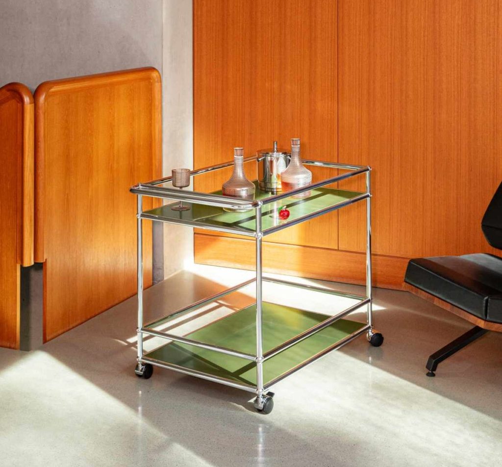 Desserte minimaliste en acier avec plateau en couleur USM Haller.