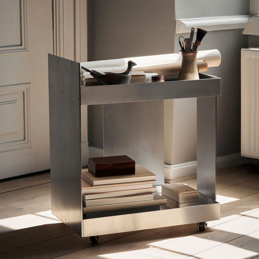 La desserte Lager Trolley est un meuble à l’esthétique brute et sculpturale en aluminium.