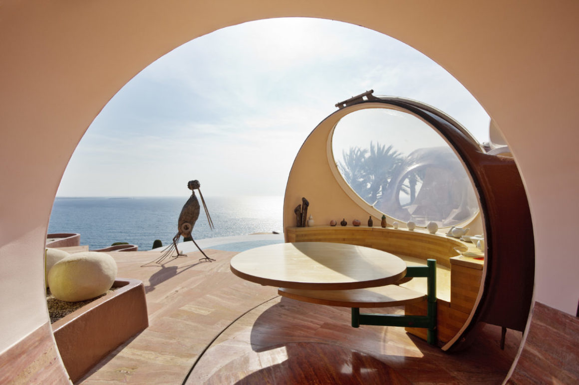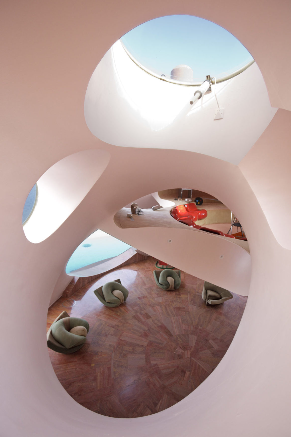 Dissociant la triple fonction traditionnelle des fenêtres, Antti Lovag équipait les bulles de «skydomes», dont l’emplacement et l’inclinaison étaient étudiés au millimètre près pour favoriser la ventilation et diffuser la lumière sans jamais éblouir les occupants. Il créait aussi des «oculus» visant un objet particulier situé à l’extérieur – un arbre, un rocher, une plante – et des «baies» offrant une immersion panoramique dans le paysage. Associés, les trois types d’ouverture offrent un champ visuel quasiment hémisphérique.