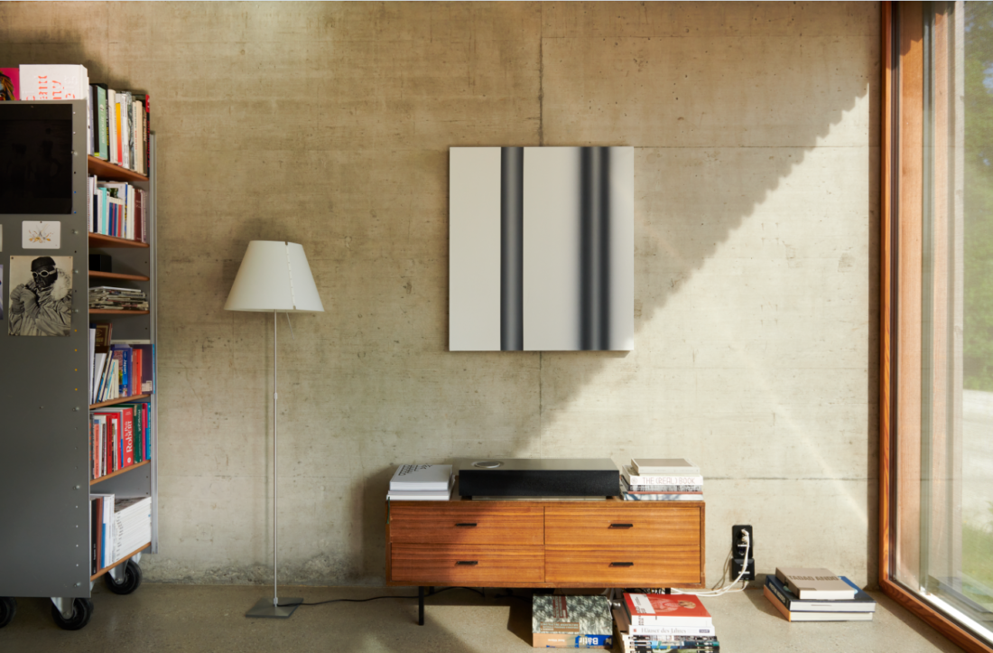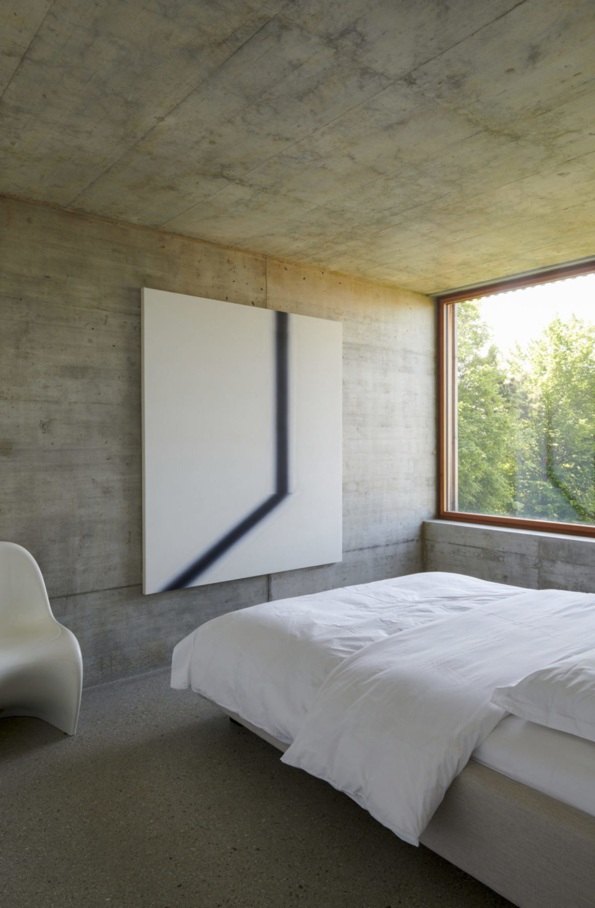 Dans la chambre d’Anne-Claude et Ulf, un tableau réalisé par leur fils Eliot contraste sur le mur en béton.