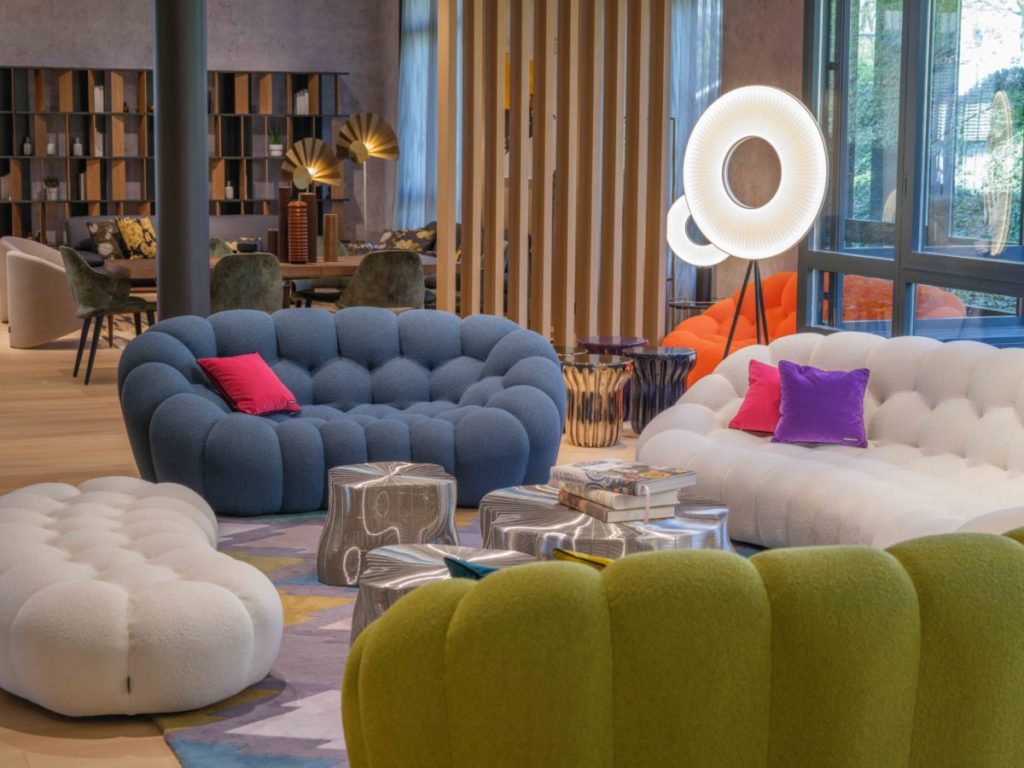 Conçu par Jacqueline Hopfer, le showroom de Crissier développe des ambiances cosy en utilisant des matières chaleureuses et naturelles comme le bois, la pierre et les plantes. Le Studio 3D Roche Bobois offre une expérience immersive à la clientèle.
