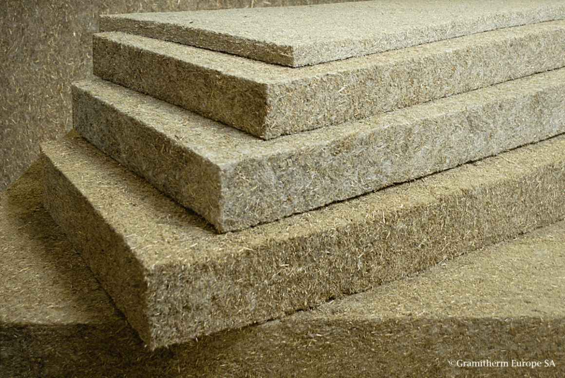 Dans une perspective constructive frugale, économe en matières non renouvelables et en technologies, ont été lancés sur le marché des isolants à base de matières organiques qui poussent localement: des isolants en herbes. Présentant une efficacité très correcte (voir la valeur lambda λ et la résistance thermique R), ce type d’isolants séduit aujourd’hui les maîtres d’ouvrage qui souhaitent adopter un nouveau mode de vie et de consommation.