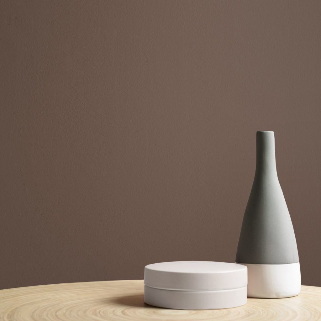 Lui aussi en quête de naturel, le fabricant de peintures et papiers peints Grahm&Brown a également présenté un brun, aux nuances chocolat plus foncées que le précédent.  Choisie comme couleur de l’année pour 2025, la teinte Elderton évoque celle de l’arbuste « Elder Tree » (sureau) dont son nom s’inspire.