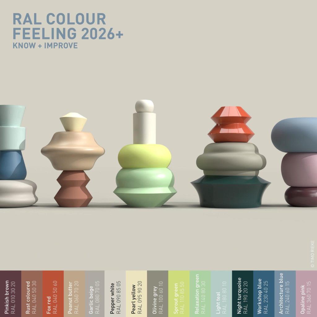 Mais Pantone n’est pas le seul à avoir repéré ce type de teintes: le fabricant de nuancier RAL farben  en a introduit une similaire dans sa palette de couleurs sous l’appellation Rust coloured (RAL 040 50 30). Certes, RAL farben ne présente jamais une couleur de l’année, plutôt un ensemble de 15 teintes influentes au-delà d’une année sous l’appellation « RAL Trend Box 2026 » ou « RAL colour feeling 2026+« .  Mais il propose par là un outil précieux pour comparer les teintes qui tendent à apparaître et à disparaître dans nos intérieurs. C’est également une source d’inspiration pour ceux qui cherchent à associer les couleurs.