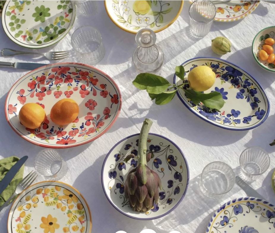 Il y a quelques années, on trouvait ces assiettes kitsch. Aujourd’hui, elles sont vintage et branchées! En référence au folklore italien des années 50-60, on renoue avec la vaisselle peinte à la main aux traits épais et aux motifs naïfs. À défaut de chiner, on se tourne vers des fabricants de vaisselle italiens traditionnels comme Molleni, Arcucci Ceramiche, Ceramica Assunta. Mais le style «mamma» a largement dépassé ces fabricants historiques comme en témoignent l’enseigne de mode Emporio Sirenuse, de jeunes labels commercialisant de l’artisanat comme Pomelo Casa et Popolo ou encore des marques d’accessoires maison généralistes (&Klevering).