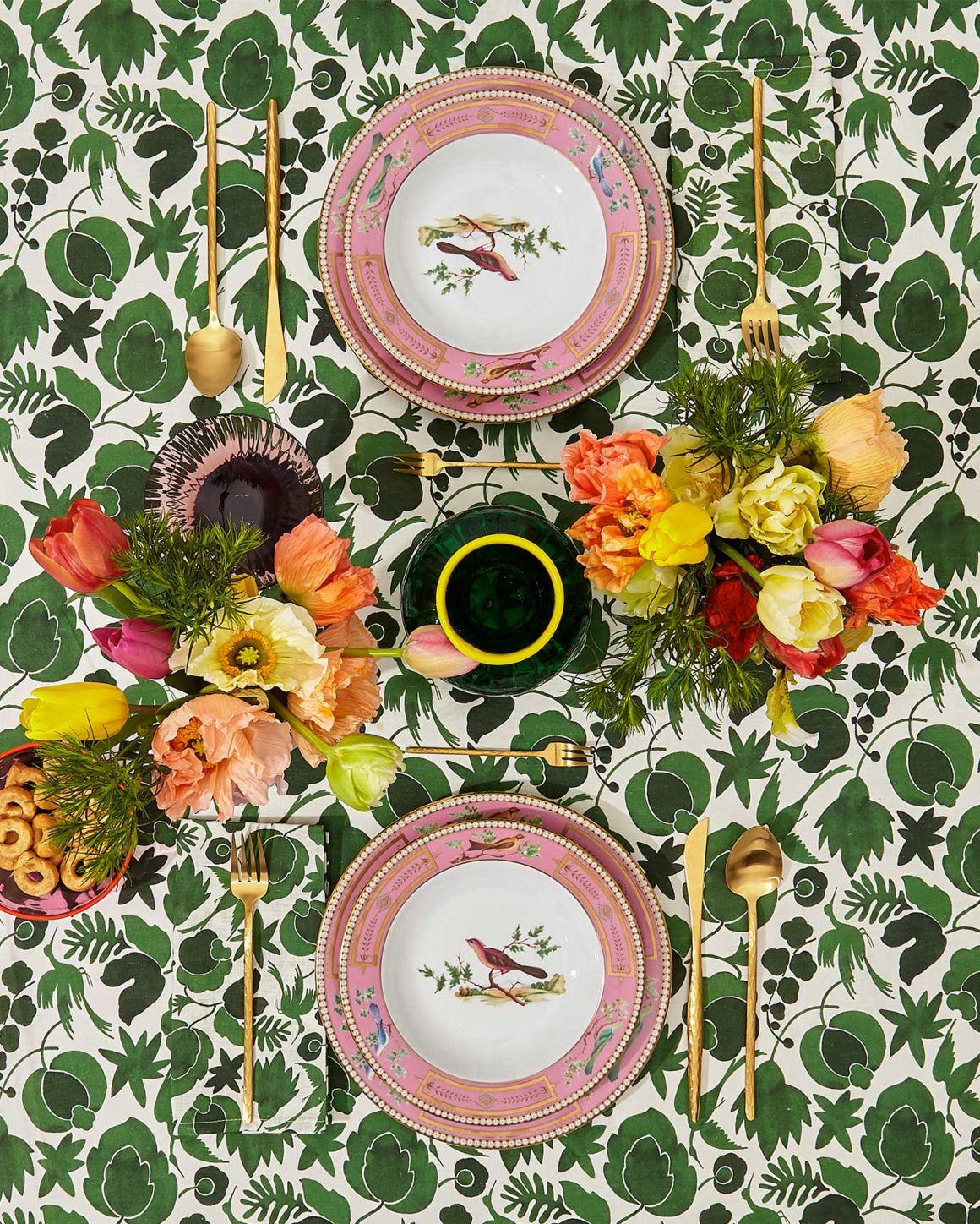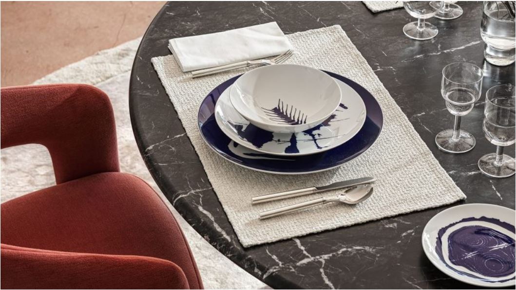 Plus rien n’est trop précieux, trop classique, trop historique. Les beaux services en porcelaine de grand-mère sortent du placard, à condition de suivre son instinct pour déjouer les codes traditionnels de la mise en place. On les mixe avec des objets en bois brut, des assiettes graphiques, des nappes qui tranchent…. Côté couleur, sur la vaisselle classique, rien ne saura jamais remplacer le bleu au registre des teintes indémodables: on pense évidemment à la vaisselle en porcelaine de la grande maison Royal Delft (fondée en 1653) et Royal Copenhagen (créée en 1775), qui sont notamment représentées par des enseignes de design. Mais les nuances pastel et légères s’invitent aussi avec malice sur les assiettes aux motifs classiques, comme on le voit par exemple chez de grandes maisons comme la Faïencerie de Gien ou Ginori 1735. Un constat qui s’applique également aux jeunes labels tels que le très branché Double J.
