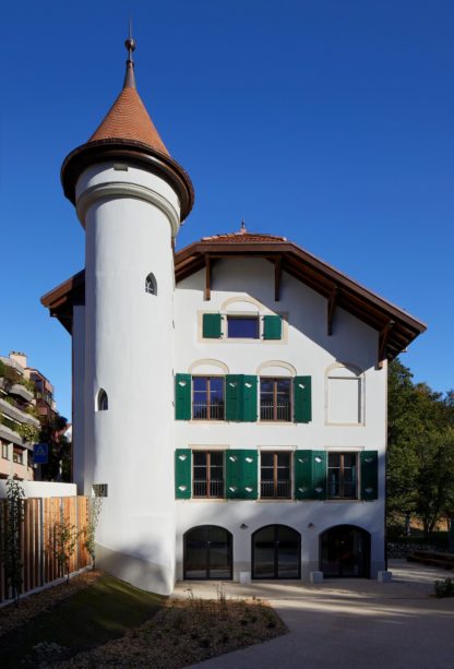Les espaces domestiques de la bâtisse charismatique, les possibilités de se l’approprier pleinement et l’environnement paysager enchanteur font de ce projet un lieu privilégié pour le développement des enfants nyonnais.